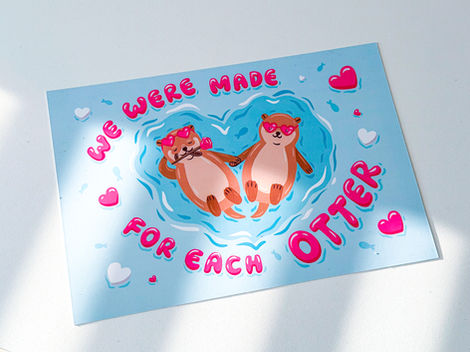Diese Grußkarten versüßen Kund:innen der Druckerei Medienfabrik Graz durch Wortspiele und verspielte Illustrationen den Valentinstag.